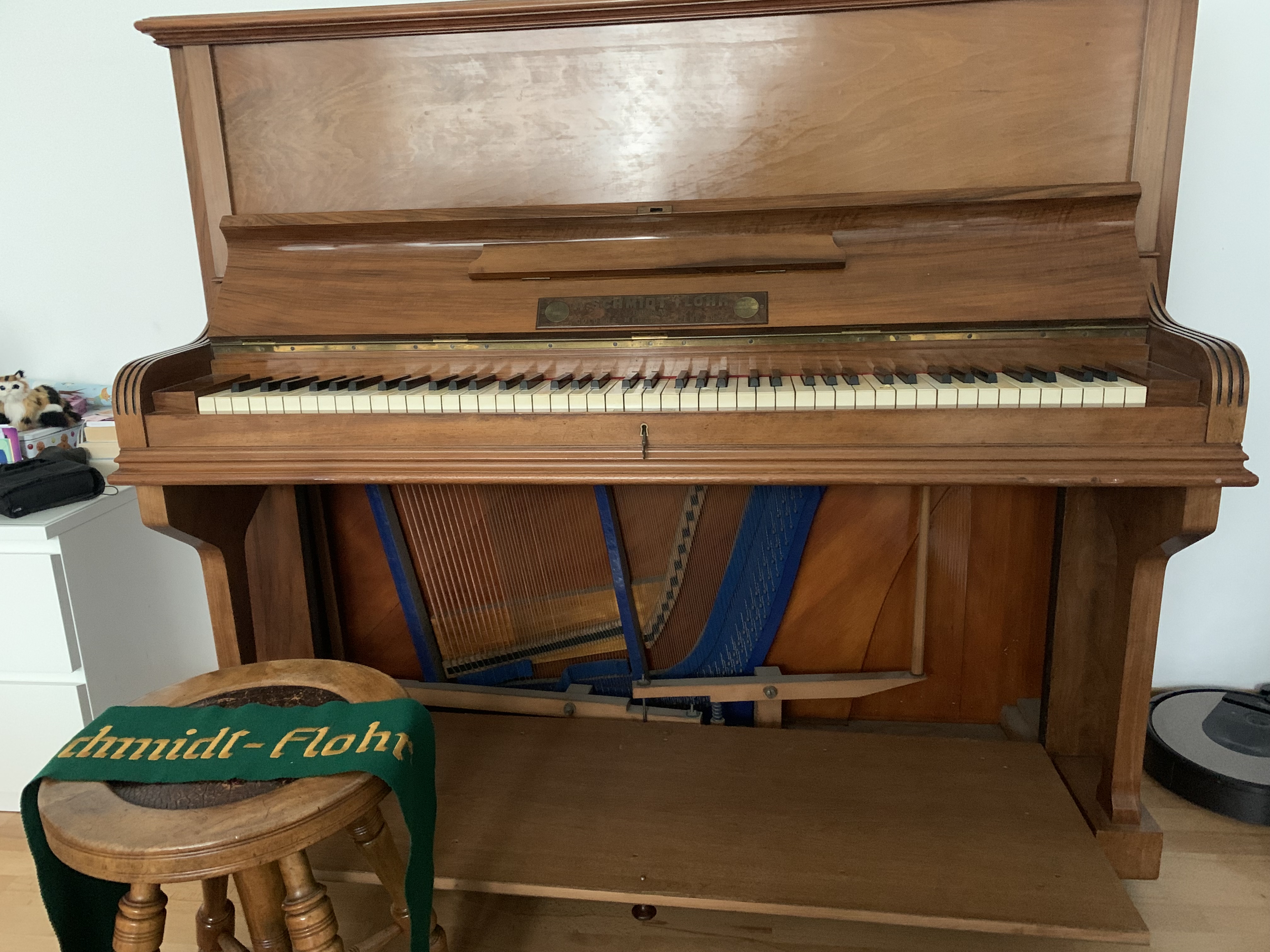 Das Instrument ist grundsätzlich in gutem Zustand, müsste jedoch gestimmt werden. Es wäre schön, wenn das Klavier weiterhin zum Musizieren genutzt werden könnte.