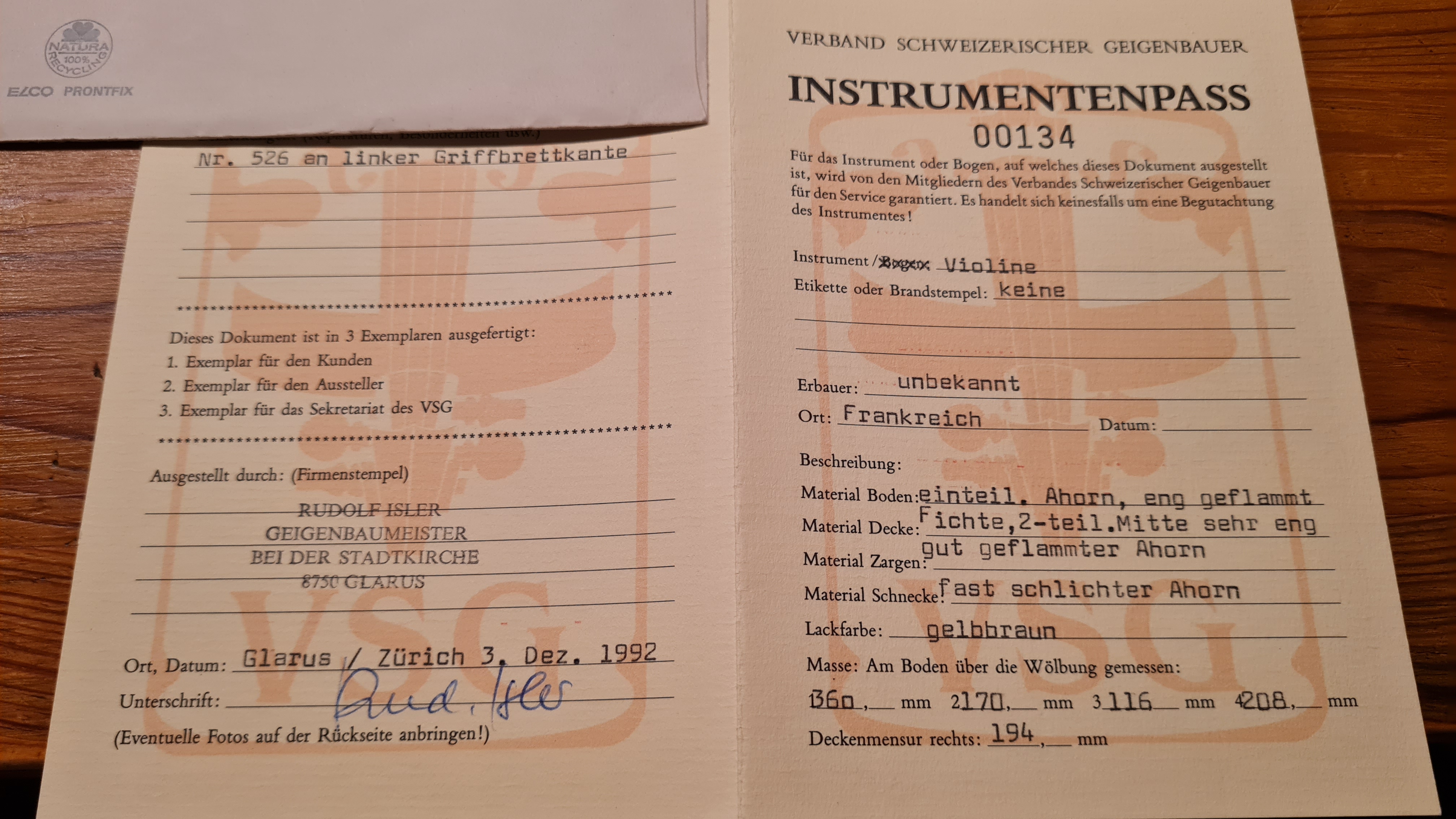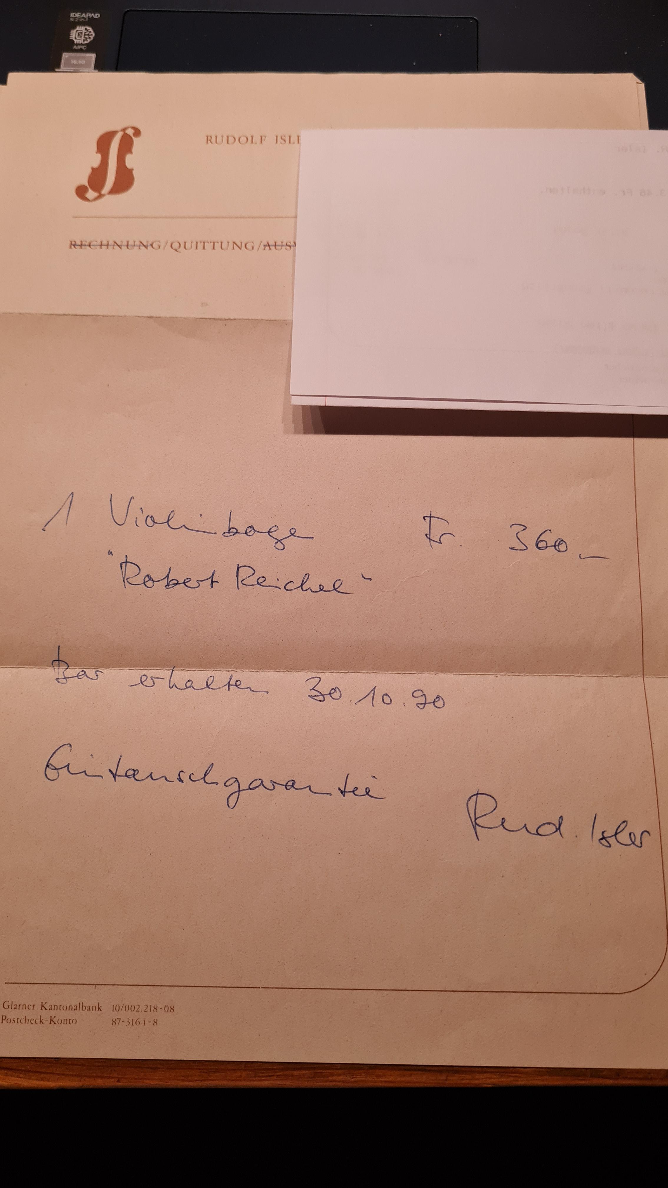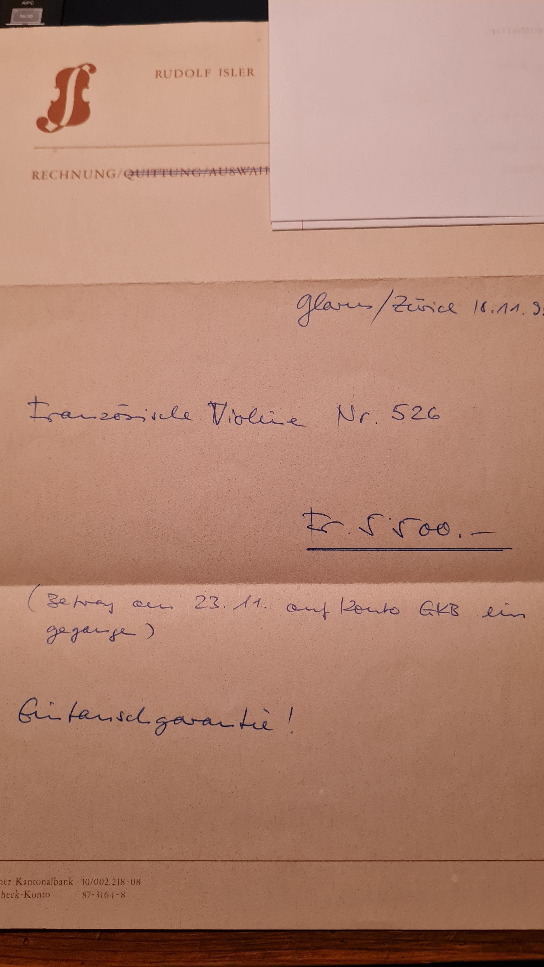 Verkaufspreis Geige: CHF 4'000.-